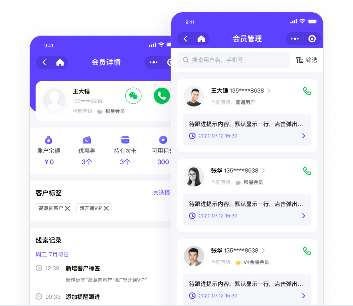 客户标签:PC管理端设置标签,小程序端可选择会员标签