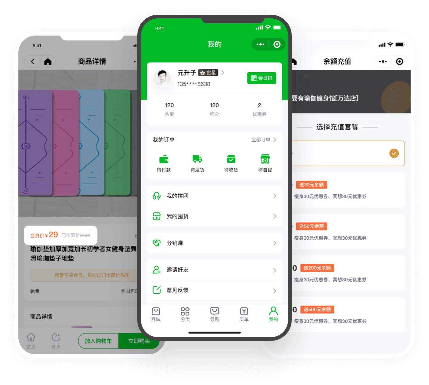 小程序会员中心支持查询消费信息、积分明细、储值余额、套餐剩余等情况,还能在线领取优惠券、成为会员合伙人等操作